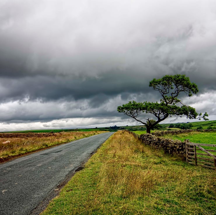 Lonely road on the North Yorkshire moors complete with sheep, farm gate and lonely tree. Sometimes simple is best.