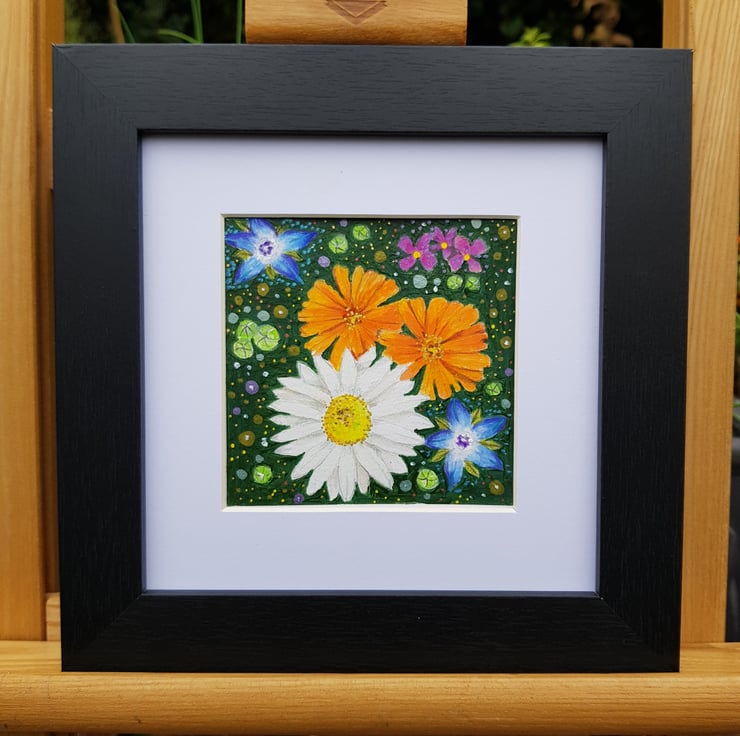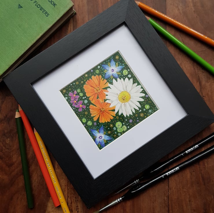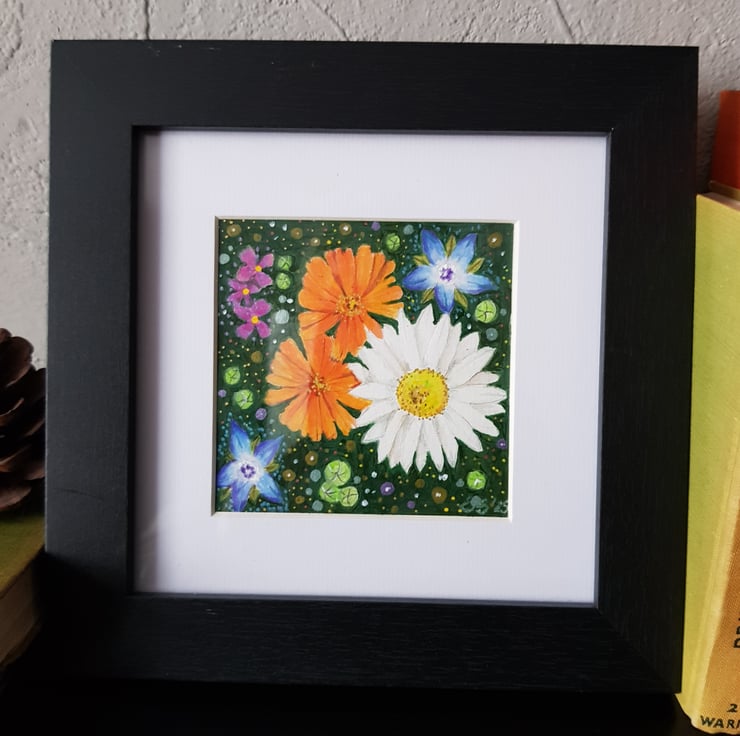 This small original artwork was inspired by the daisies, calendula and borage flowers from our garden. All these wonderful flowers have healing properties and are used in herbal treatments all around the world.