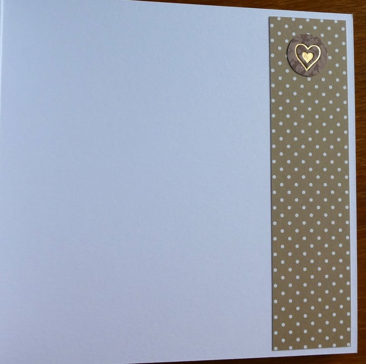 The inside of the card has a band of matching polka dot patterned card down the right hand edge with a tiny image of a gold foiled heart at the top, leaving plenty of space for you to write your own message.