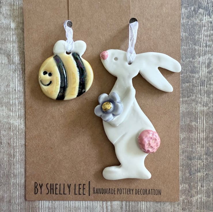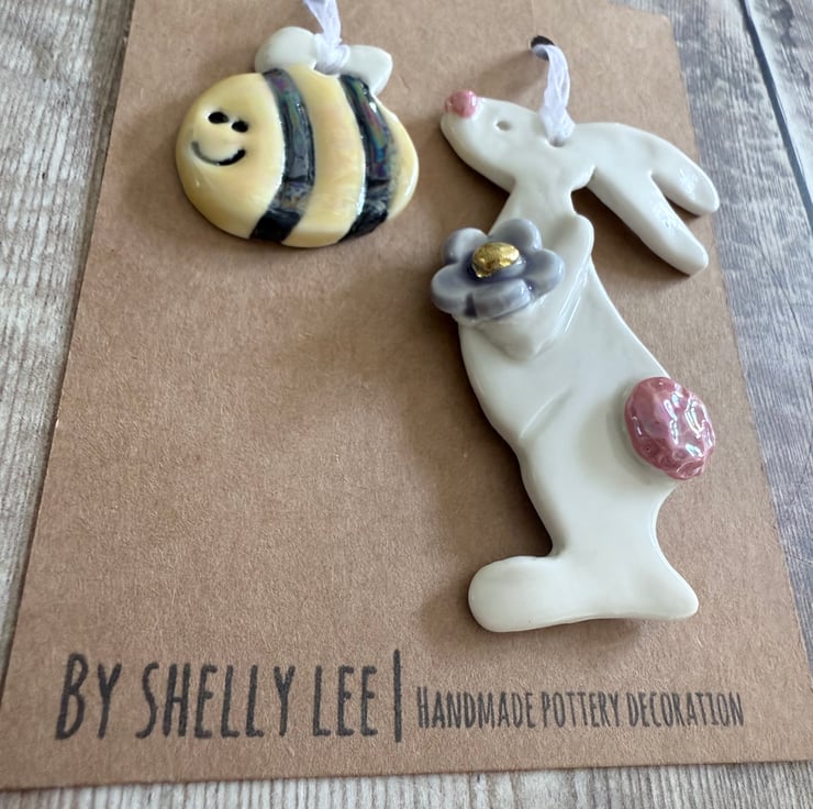 Beautiful handmade porcelain rabbit hanging decoration.