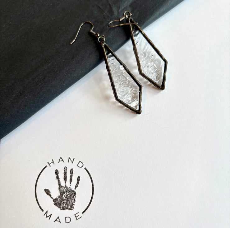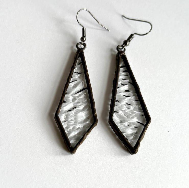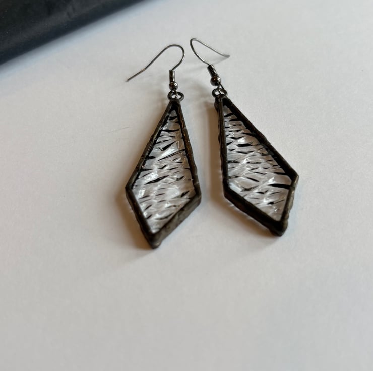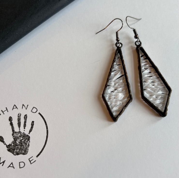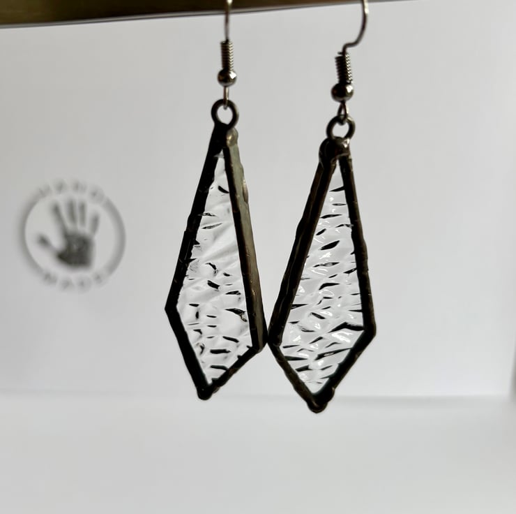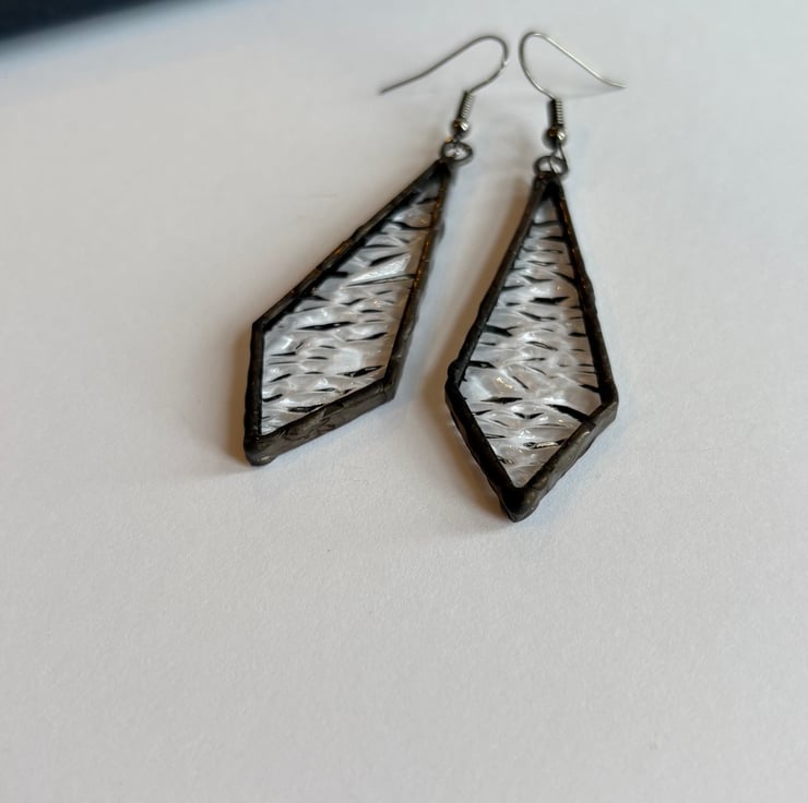 These stained glass dangle earrings have been made from a gorgeous textured stained glass which reminds me of frost and ice crystals.