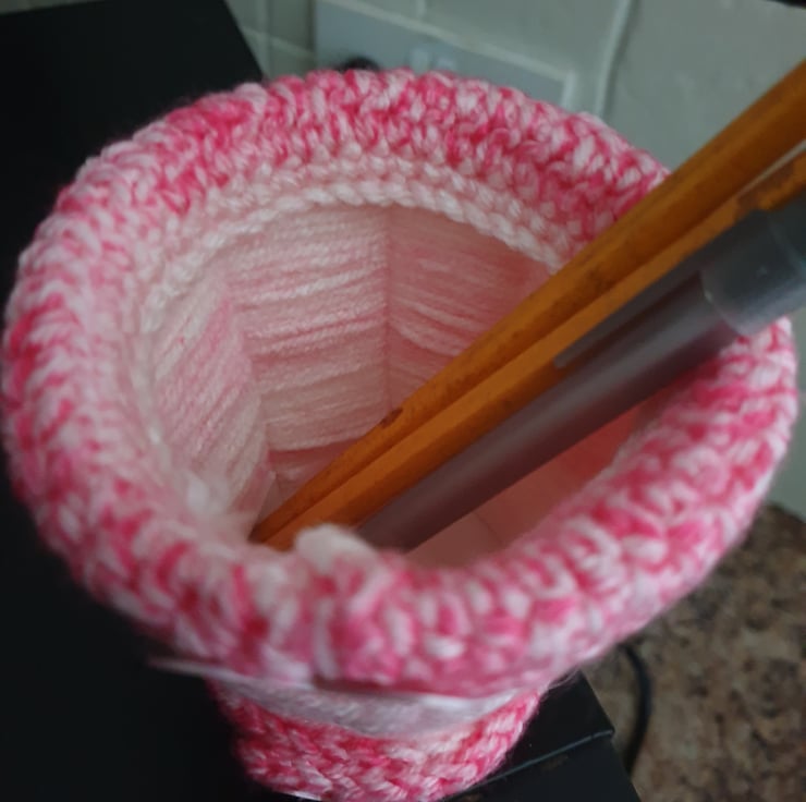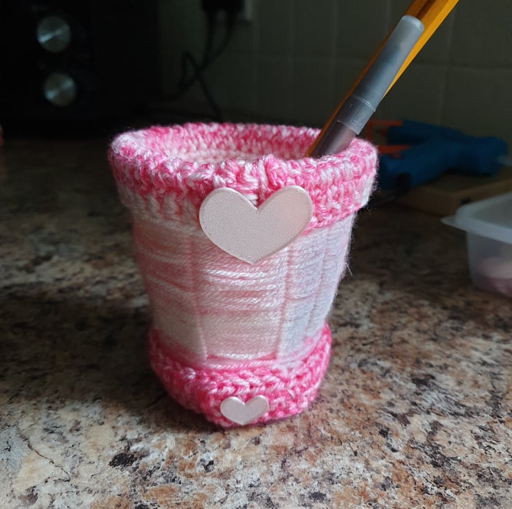This is a handmade pencil or pen holder, perfecty to decorate anyone's desk.
