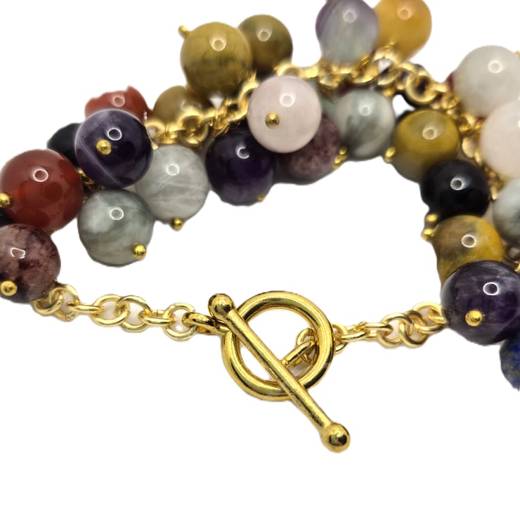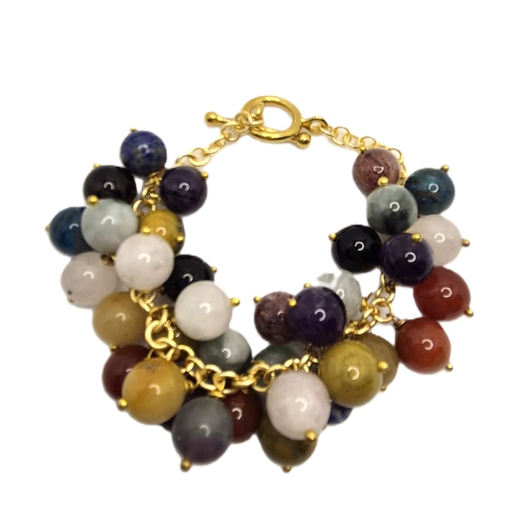 This pretty bubble bracelet comprises of lots of different gemstone beads in many different colours.
