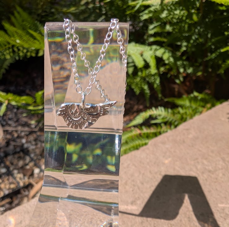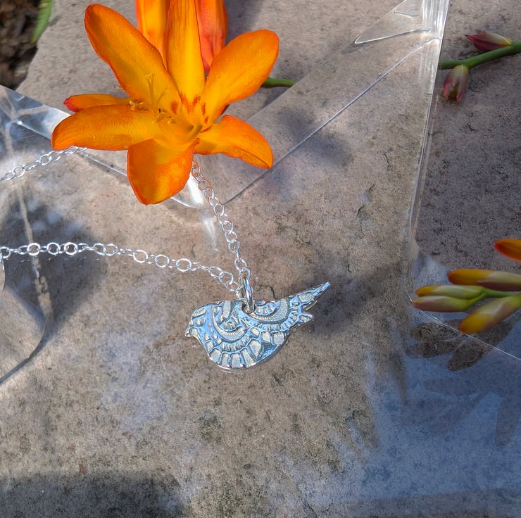 This Little Bird pendant is textured with my "Heritage Lace Design". The perfect gift for an animal lover or an imaginative way to fulfil the 13th Wedding Anniversary gifting tradition.