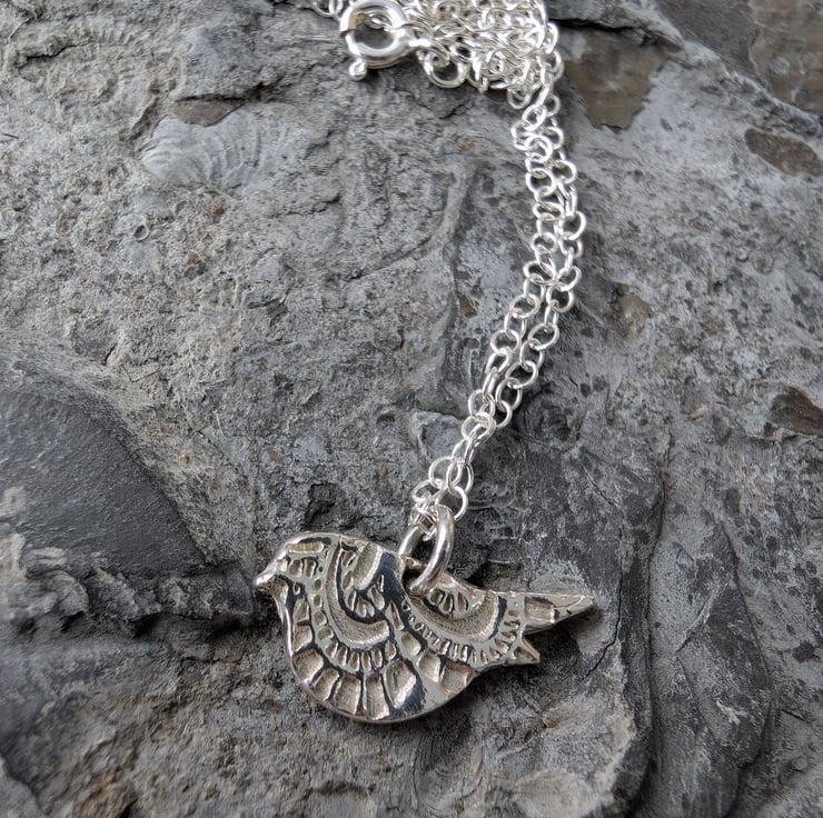 Handmade Fine Silver Little Bird Pendant - Heritage Lace Design