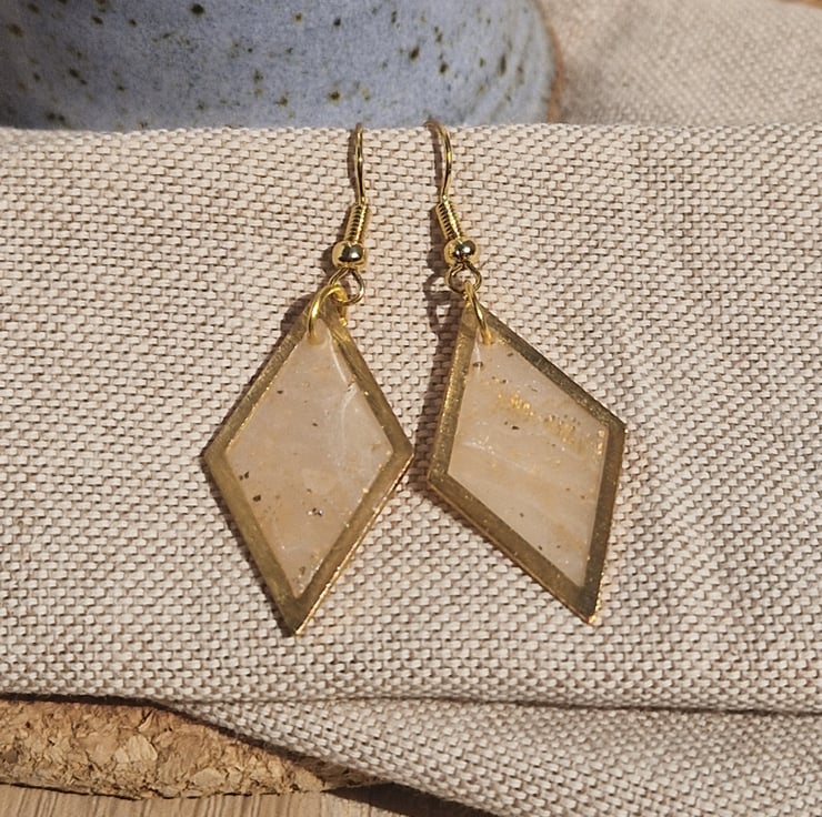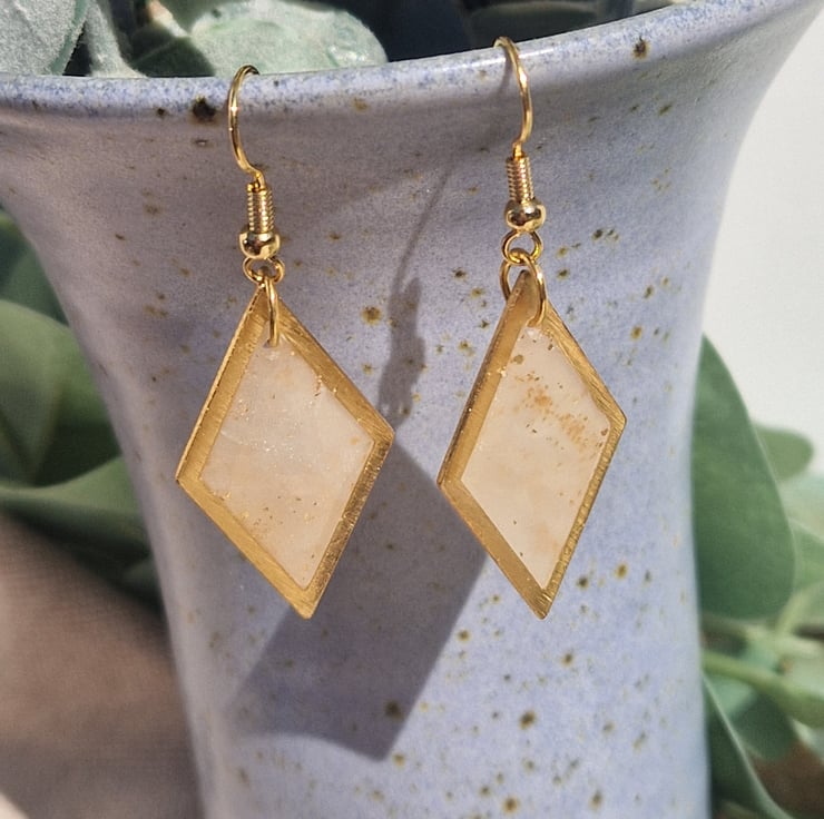 Handmade with care, these bezel earrings are crafted from lightweight polymer clay, making them comfortable enough to wear all day. Each pair is unique, no two are exactly the same, giving you a truly one-of-a-kind accessory. Approximately 50mm long.