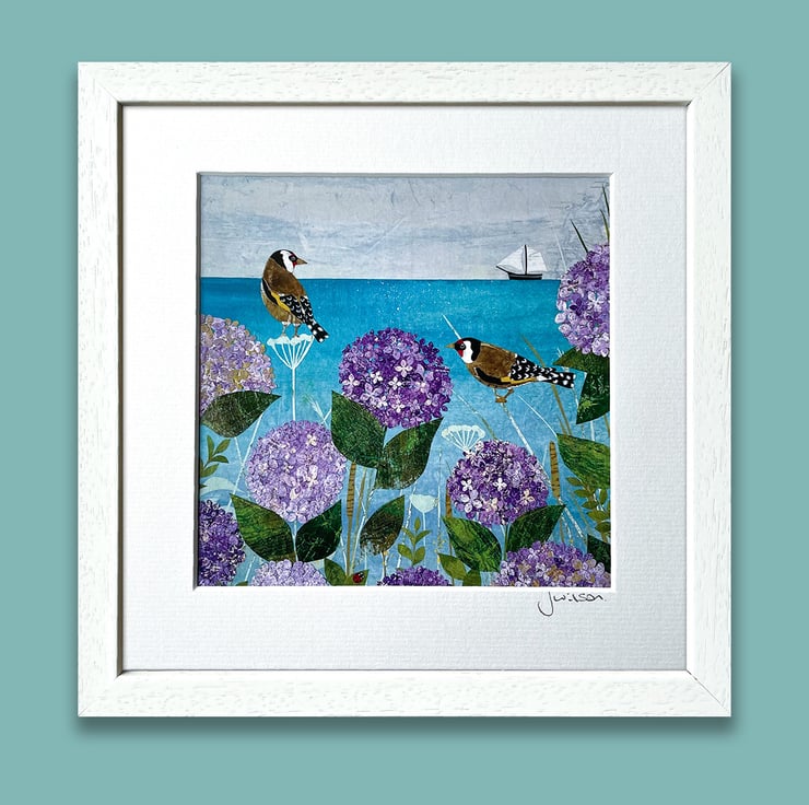 A lovely framed print of my original mixed media and collaged painting "A Cornish View"