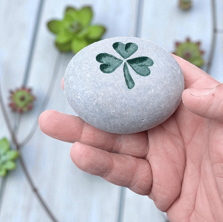 Celebrate love, luck, and nature with this beautifully hand-carved shamrock stone, where each leaf is shaped like a heart. Carved into natural stone and hand smoothed finish