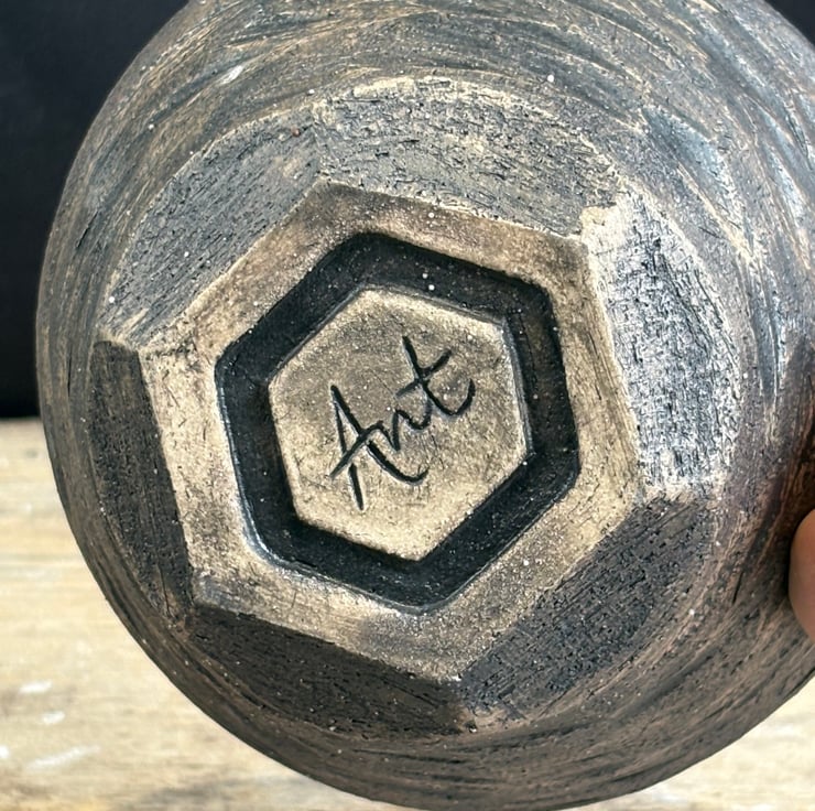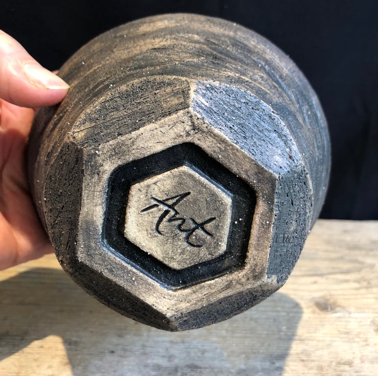 The bottom of the bowl has been carved with my distinctive hexagon and signature combination.