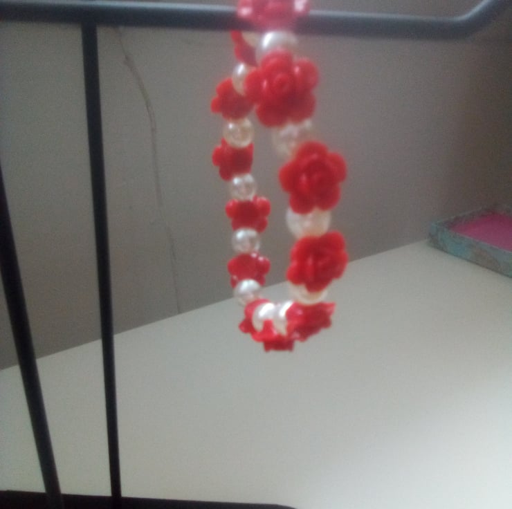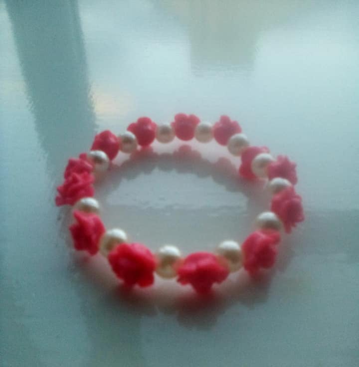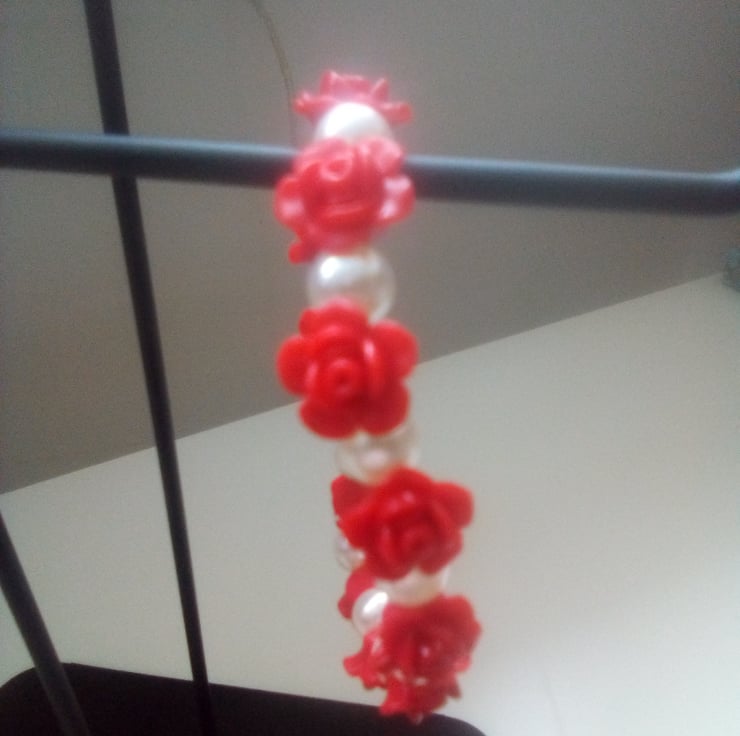 Roses of the 18rh century and white pearl to make the bracelet stand out.