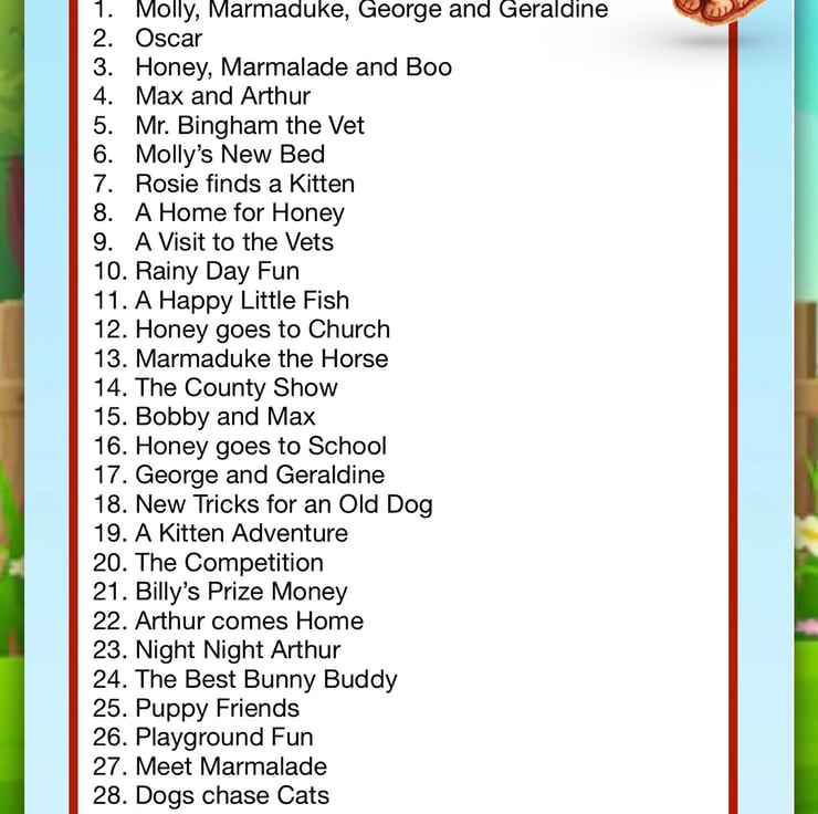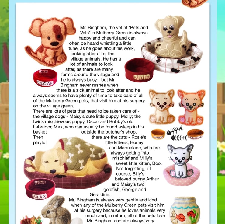 A full colour story book with 31 stories about the Mulberry Green characters and their pets. Each story is just long enough for bedtime. Suitable for children 3-8 but enjoyed by anyone young at heart. Read about Maisy and Mo, Violet, Billy Spraggs and all of the other little characters in Miss. Davies’ class at Mulberry Green School.