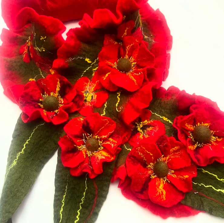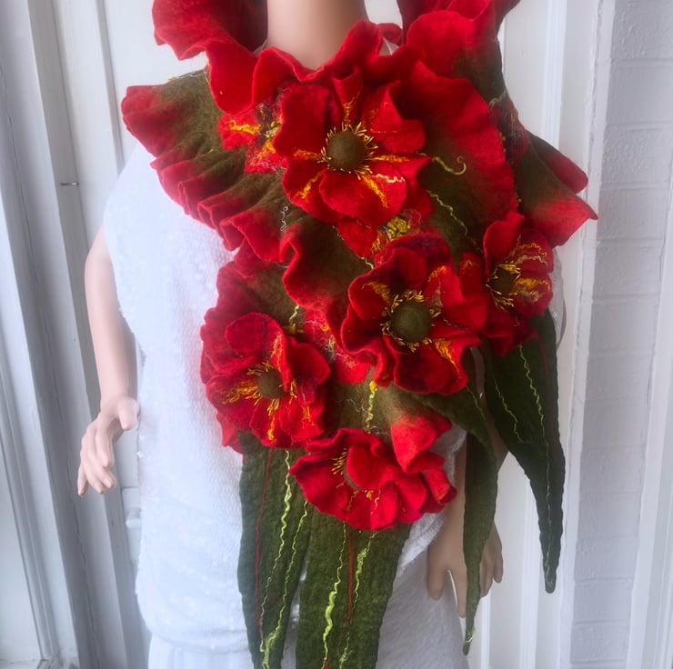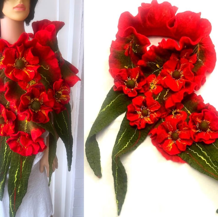 Hand Felted, Wool felted soft ART SCARF on silk
