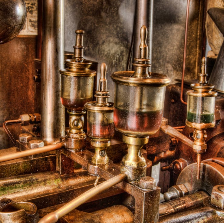Who say functional engineering can't look good? Beautifully engineered brass and glass auto oiling system for a large steam engine bearing.