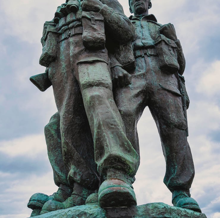 The Commando Memorial can be found on the A87 near Spean Bridge. It depicts a trio of men in military uniform and honouring the original Commandos and all those who have since lost their lives in battle.