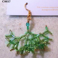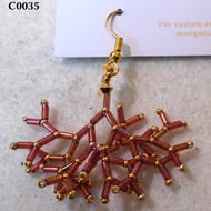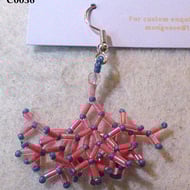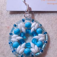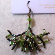 I had these beads! They are also used in the hexagonal earrings, but not so many of them; and they are quite versatile because they have two holes, so I decided to see what I could do if I used them as the main component. The brickwork arrangement is very commonly used - it's pretty much what these particular beads were made for; but I wanted my own take on it and this is it.