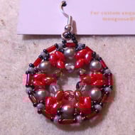 Brickwork-style bead loop earrings; the loop is just under 3 cm long. Available in two or three colours. Normally every pair is unique, but I am happy to do custom orders, including matching sets for your bridesmaids to complement their outfits. I can also do clips in either gold or silver finish. The earwires are all nickel-safe, lead-safe, and cadmium-safe.