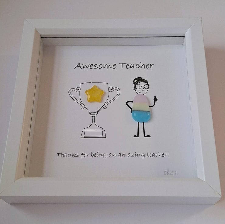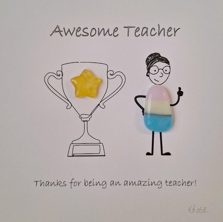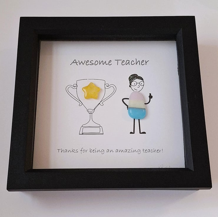 Thank you gift for teachers which can be bought unpersonalised or personalised. The picture is a digital print. The artwork is embellished with sea glass.