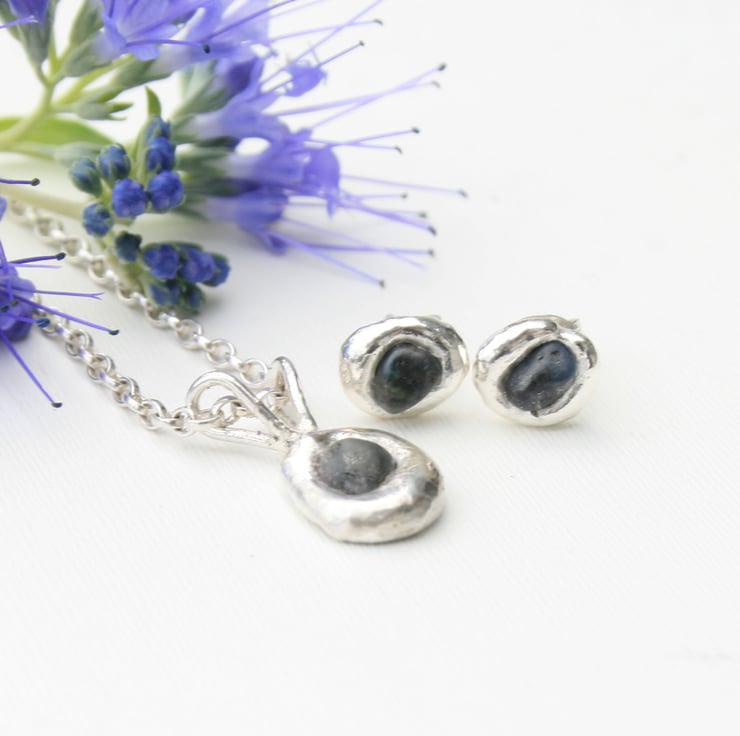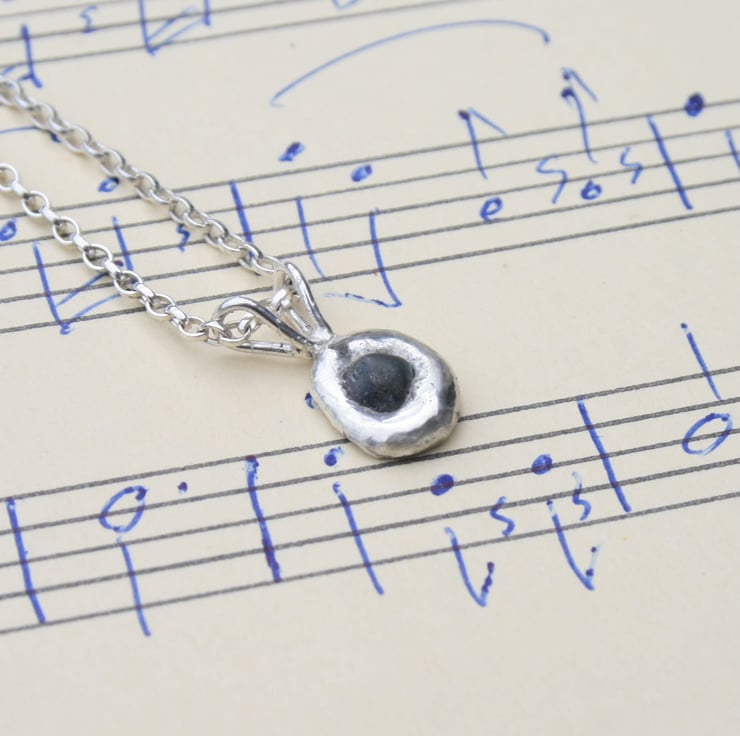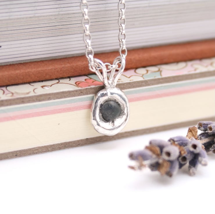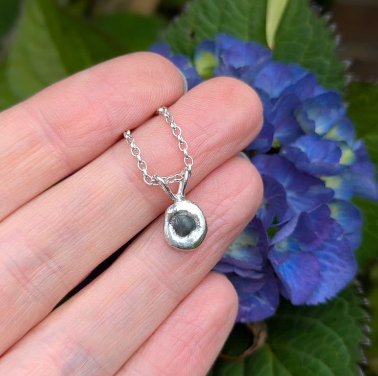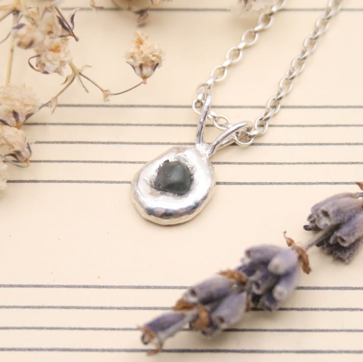 No two necklaces will ever be the same – the flow of the molten silver and the natural shape of each sapphire mean every piece is unique. I make sure the pendants are similar in size, and you can choose the chain length that works best for you. The chain threads through a double silver loop, giving the design a simple and timeless finish. The total length of the nugget and double hoop bale is approximately 15 mm.