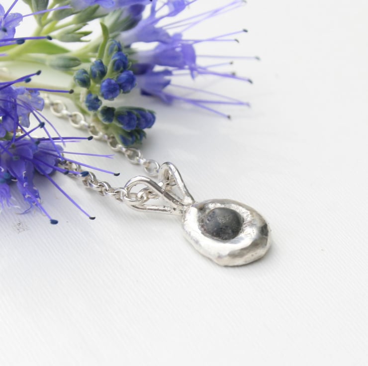 Handmade Organic Silver and Sapphire Necklace, Molten Silver Necklace