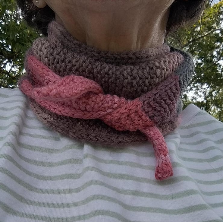 The Scarflette - soft and lightweight - a small, neat scarf, perfect to fill the gap between collar and cap, to be snuggly warm without the bulk of a long scarf. Wrap it once like a small neck shawl, or wrap it twice to keep out the draughts.