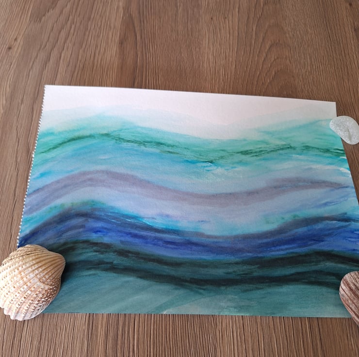 Watercolour painting 10.5x7.5 abstract waves border display purposes only