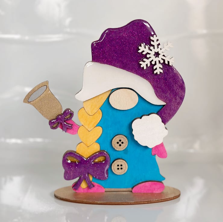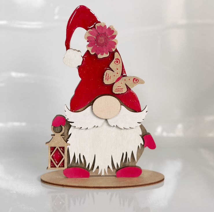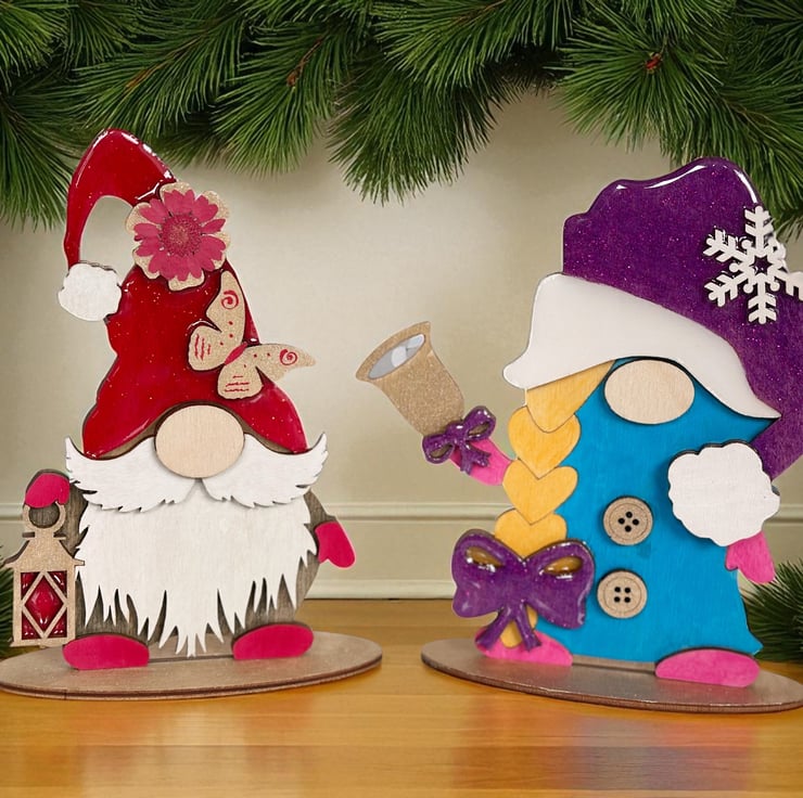 Handmade from wood and resin, these festive gnomes are full of bright colors and whimsical details — from the little lantern to the shiny snowflake and cozy winter hats. Perfect for adding warmth and cheer to your Christmas decor.
