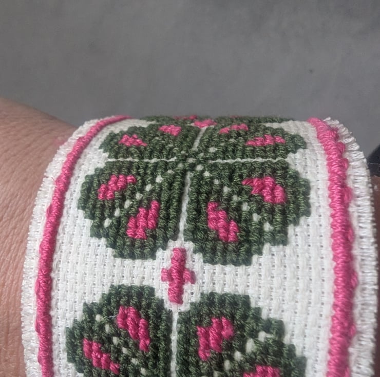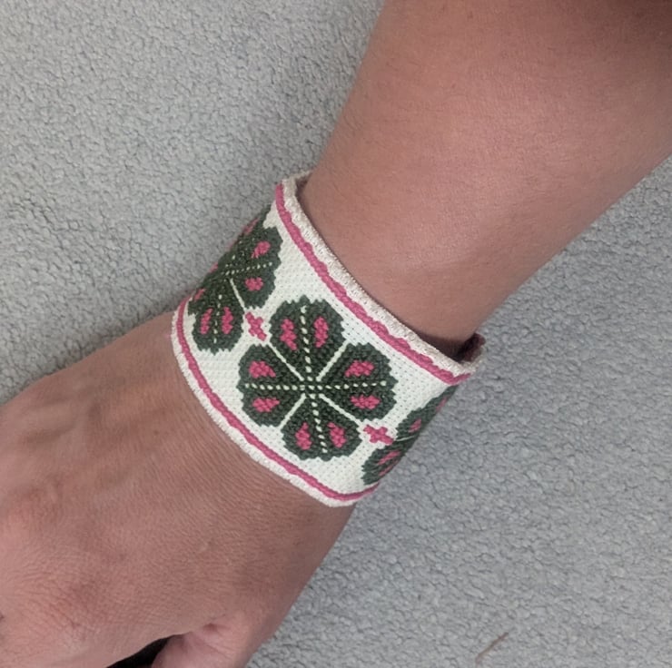 Fabric bracelet in funky combination of pink and dark green - prototype which can be changed to your preferences. Unique piece of accessories which will make anyone's wrist to stand out!