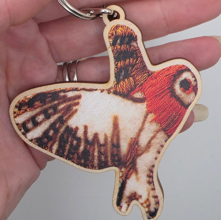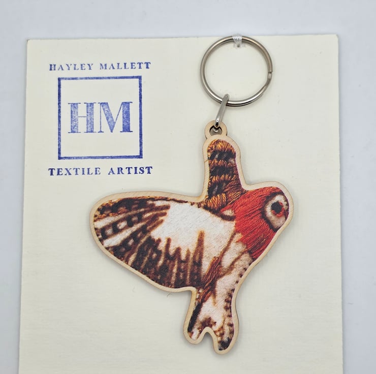 This beautifully crafted wooden Barn Owl keyring features a detailed design taken from one of my original hand embroidery artworks. Inspired by one of Britain’s most beloved nocturnal birds, it makes a unique and thoughtful gift for bird lovers, gardeners, or anyone who treasures the beauty of British wildlife.