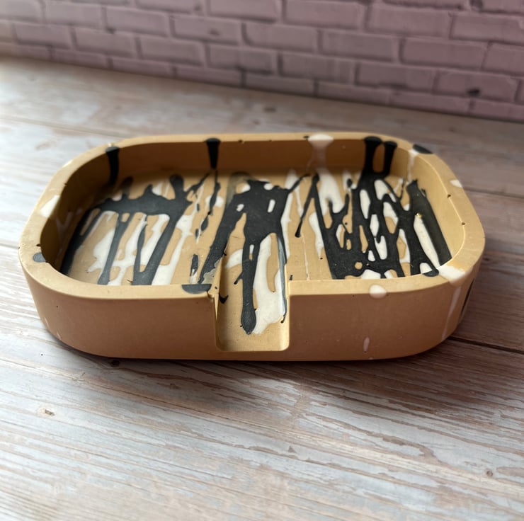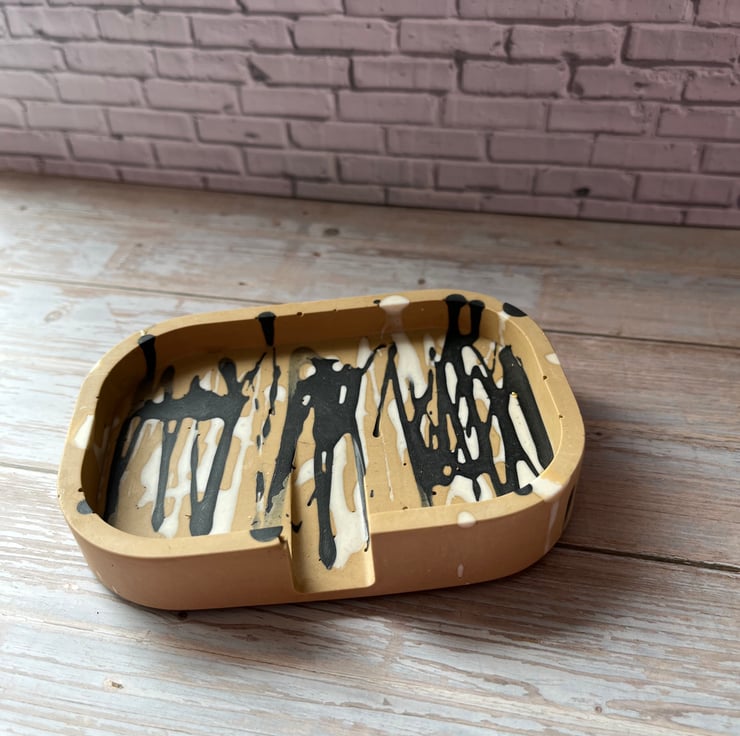 Add a splash of urban elegance to your bathroom with this handcrafted soap dish, made from eco-friendly Jesmonite and finished with natural beeswax for a soft, organic sheen. Measuring just under 4.5 inches in length and 3 inches wide, it’s compact yet striking—perfect for bathrooms, en-suites, or downstairs loos in need of a little personality.