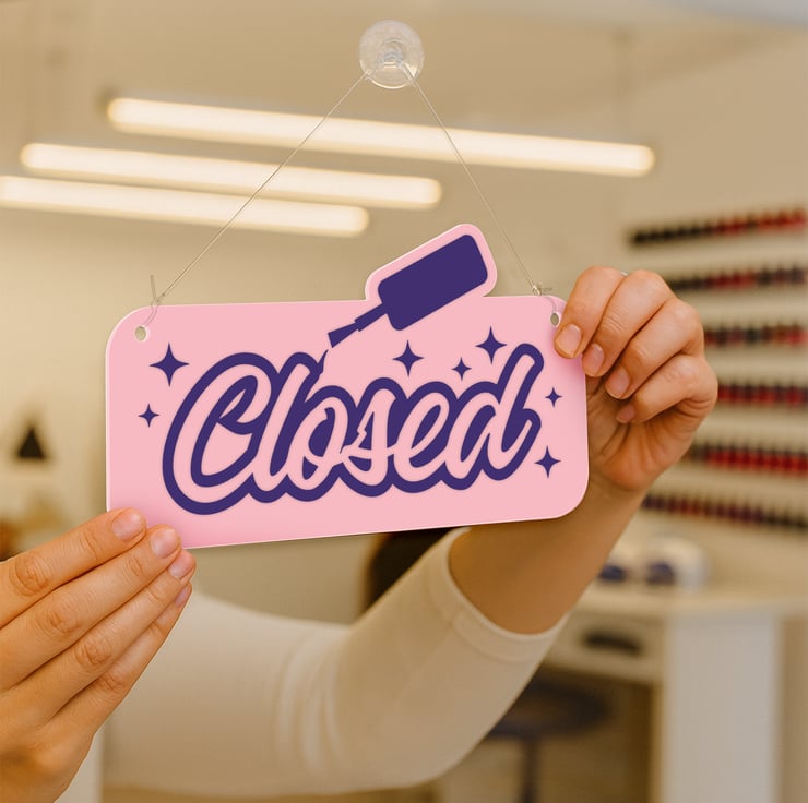 Nail Technician Open & Closed Sign – Nail Polish Bottle Design: Hanging Sign