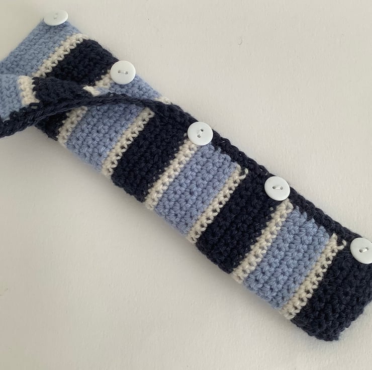 I've chosen a striped pattern for this particular sleeve . Then added 5 white buttons for closure.
