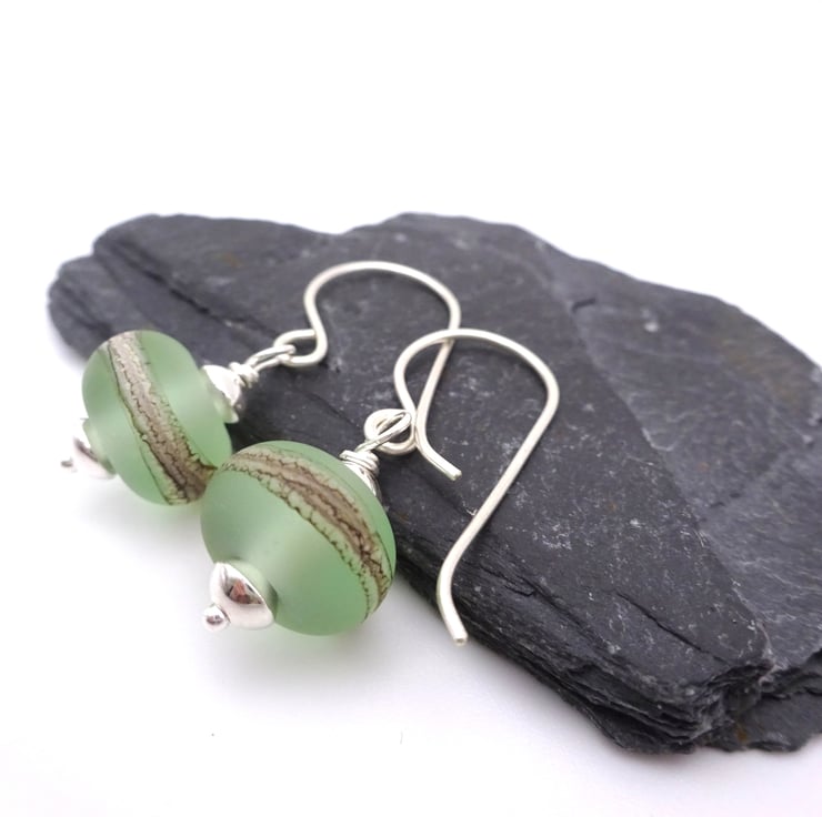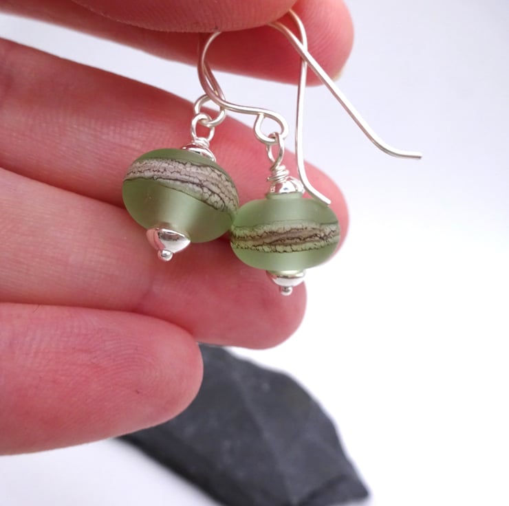 pale green lampwork glass earrings