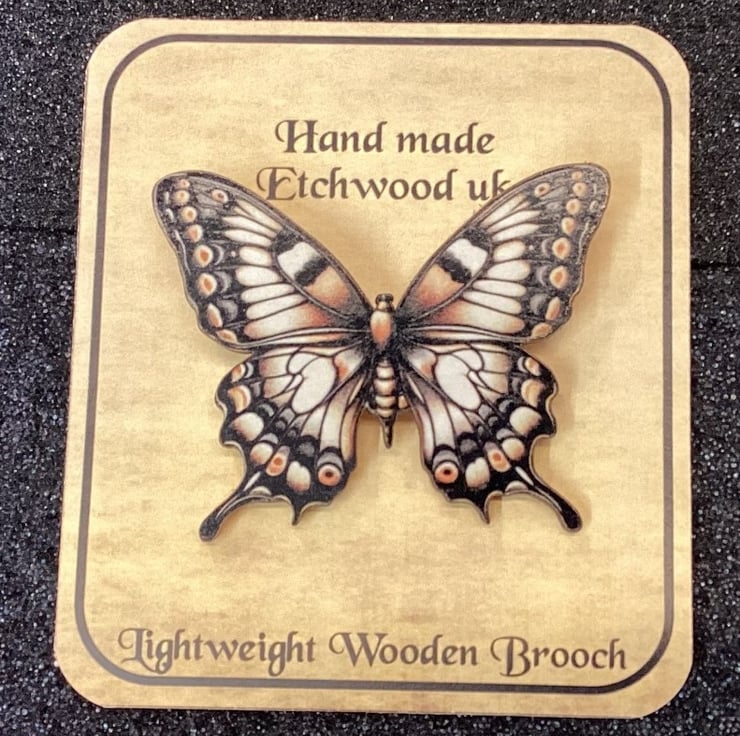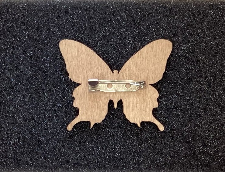 The laser wood cut out comes with a metal brooch fastening and makes an elegant and graceful statement, which enhances any outfit..