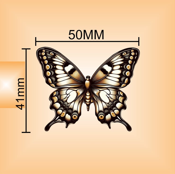 A laser cut wooden background with a graphic featuring a delicate butterfly.
