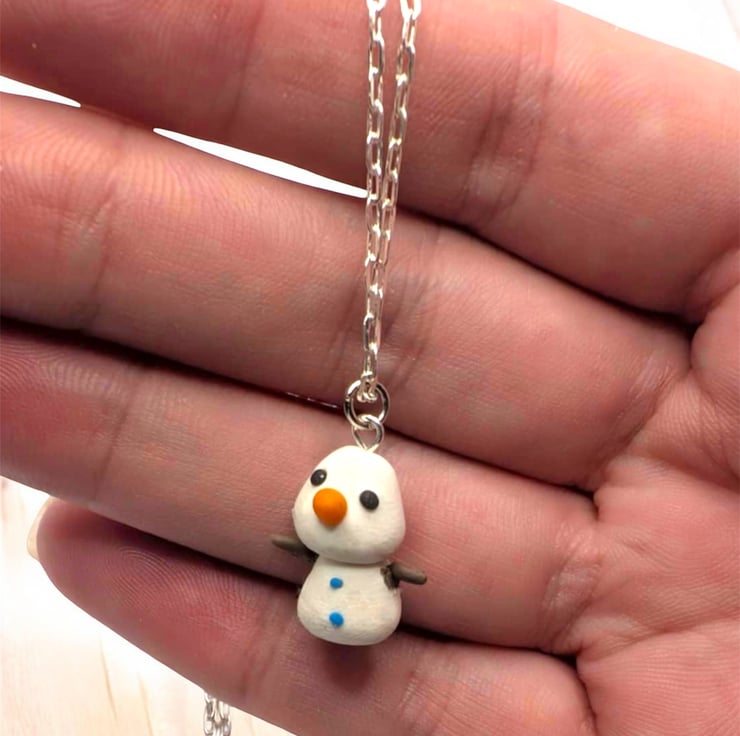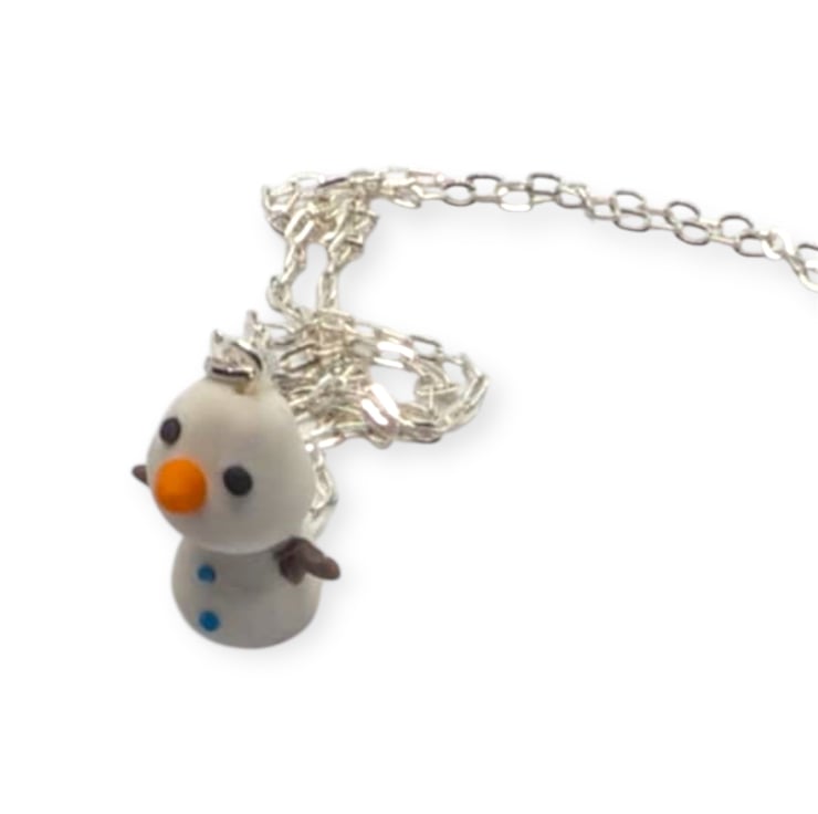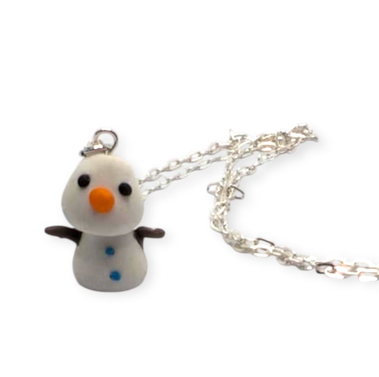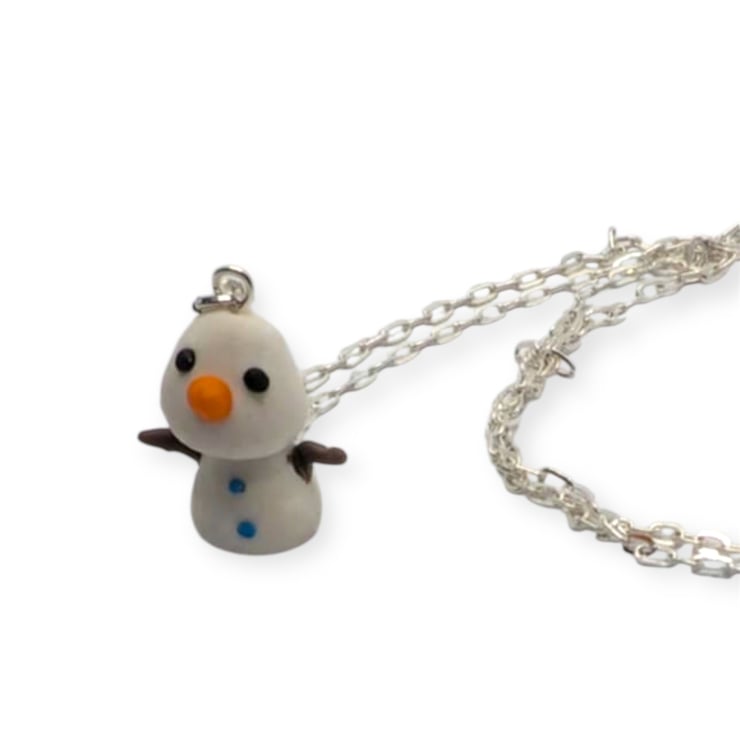 Handmade Snowman Pendant Christmas Necklace – Festive Polymer Clay Jewellery