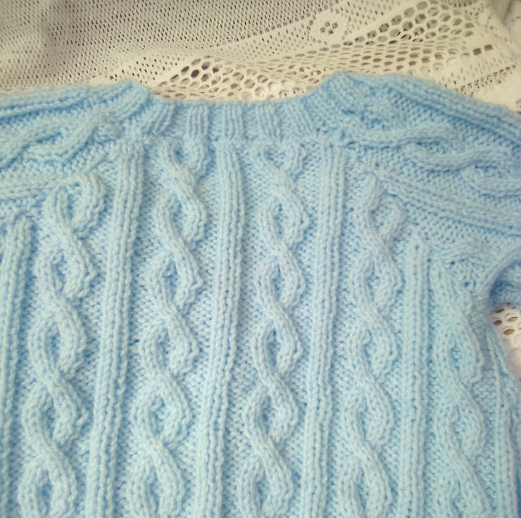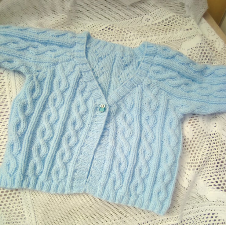 Girls cable pattern cardigan. The jumper is not in stock but it can be made for you in a colour and size of your choice with either long or short sleeves. Please let me know the colour required when you order. Available sizes are shown at the bottom of this listing. The processing time for this item will be 1 - 2 weeks to produce and post to you.