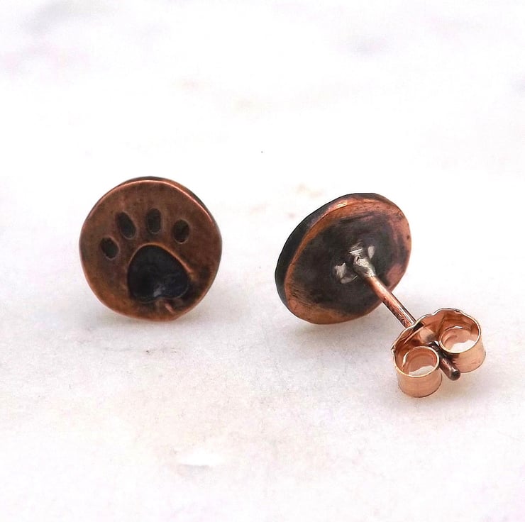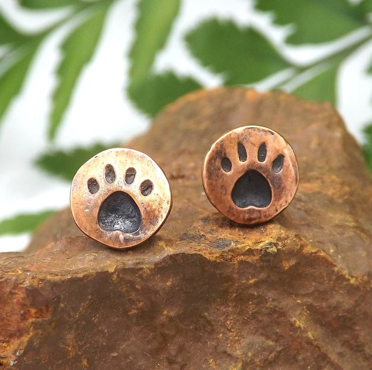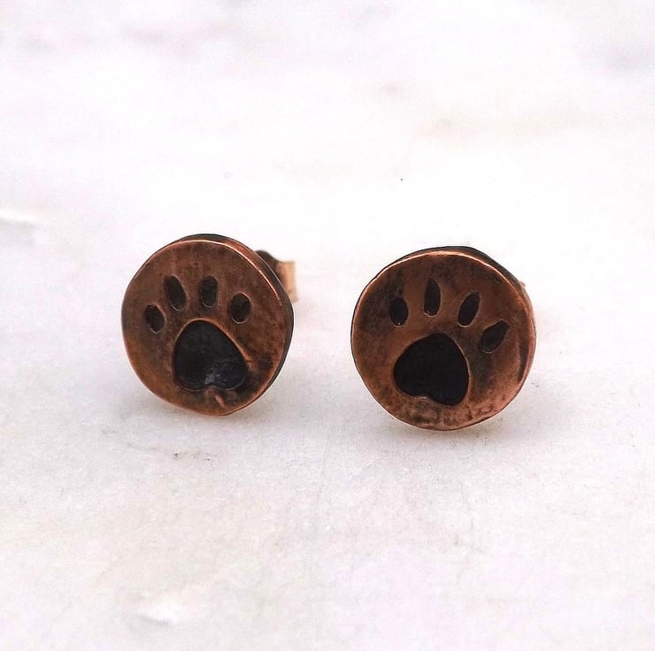 Recycled Copper Paw Print Stud Earrings.