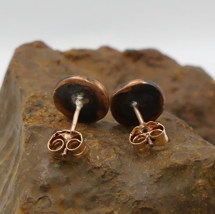 Recycled Copper. Rose Gold Fill. Sterling Silver Solder. Patina Gel is Liver of sulphur.