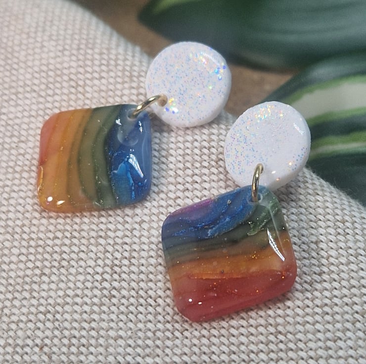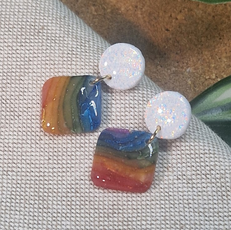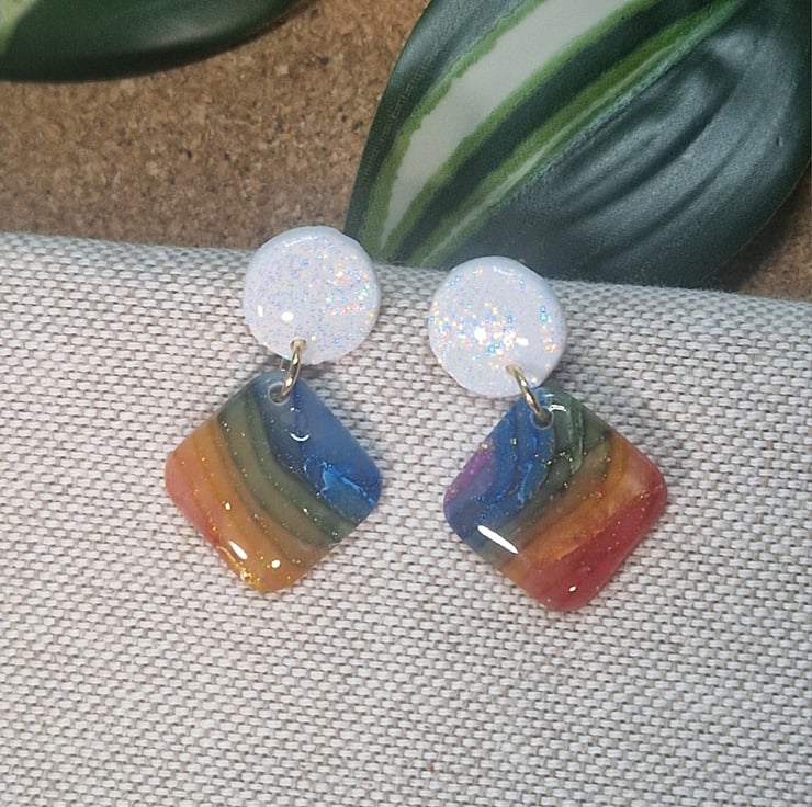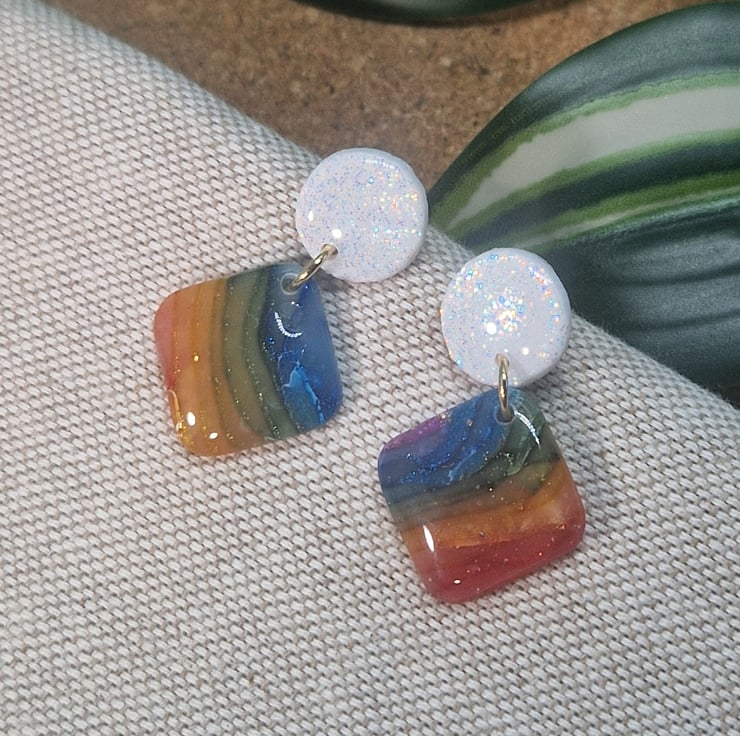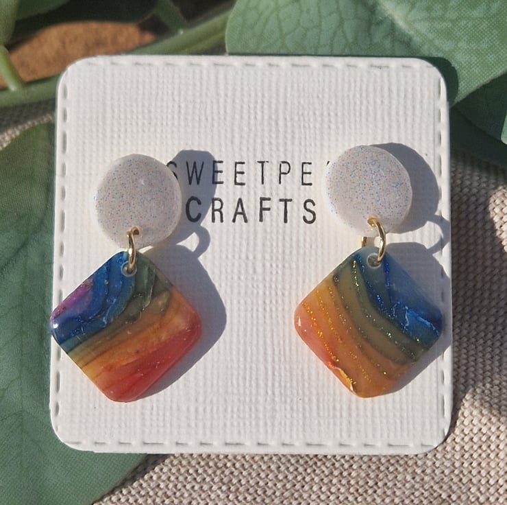 Handmade with care, these small dangly earrings are crafted from lightweight polymer clay, making them comfortable enough to wear all day. Each pair is unique, no two are exactly the same, giving you a truly one-of-a-kind accessory. Approximately 20mm long. Hypoallergenic studs.