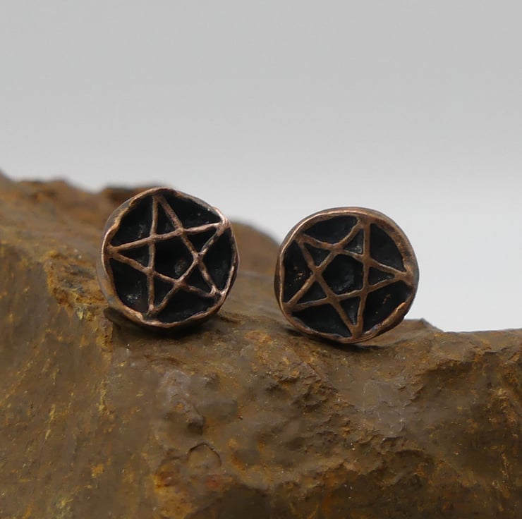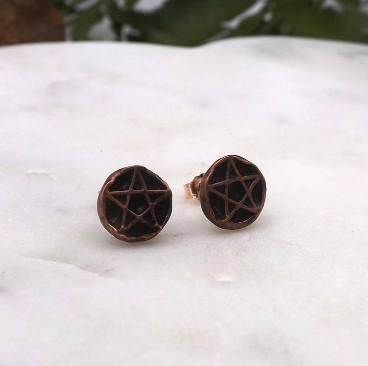 Recycled Copper Pentacle Stud Earrings.