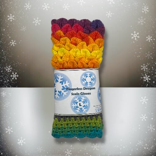 These crocheted fingerless gloves have been made from a 80% Acrylic, 20% Wool yarn. The top part of the gloves is made with a lovely dragon scale stitch. They are nice and cosy for those chilly days, but offer the flexibility of having your fingers free to perform fiddly tasks.