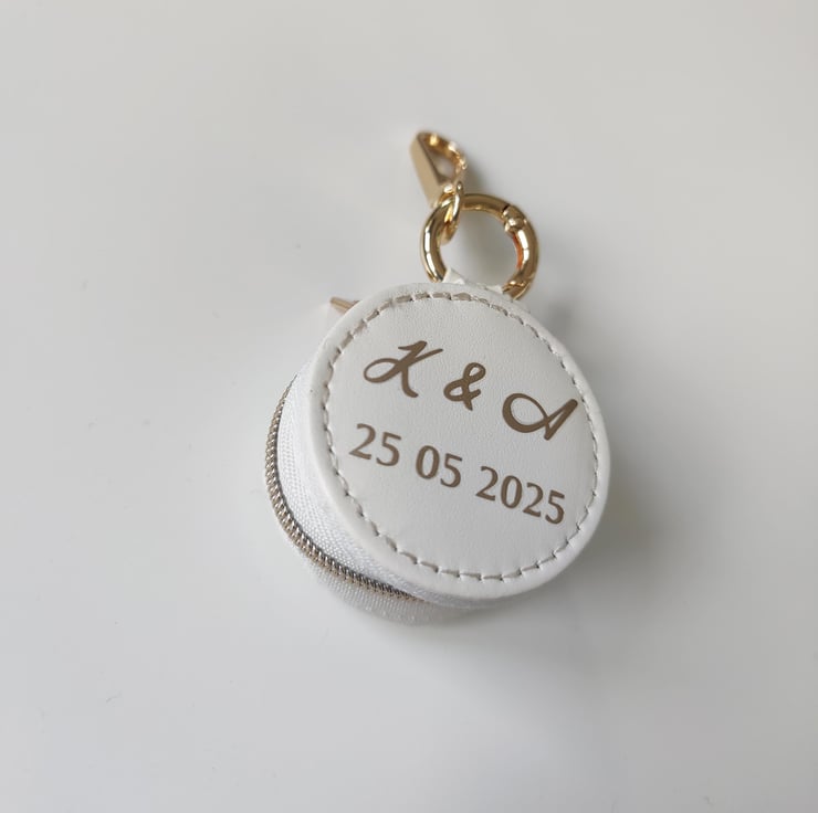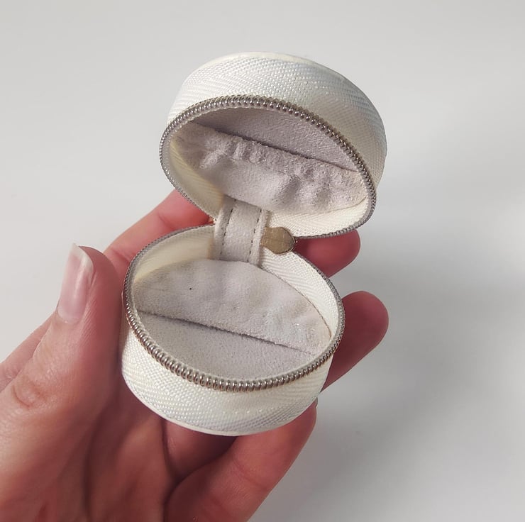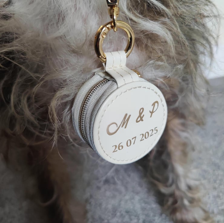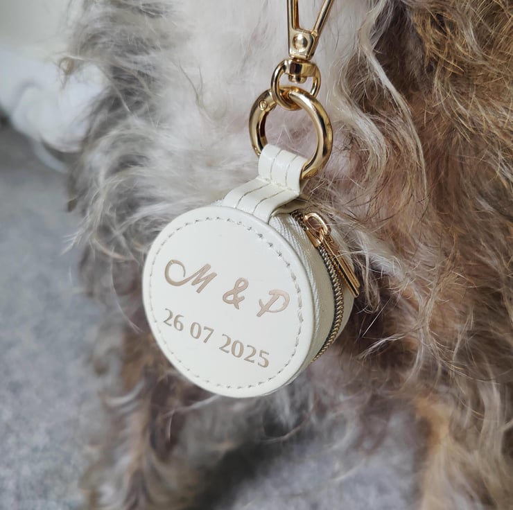 The box features a clasp on the top, therefore it can be securely attached to your dog’s wedding collar.