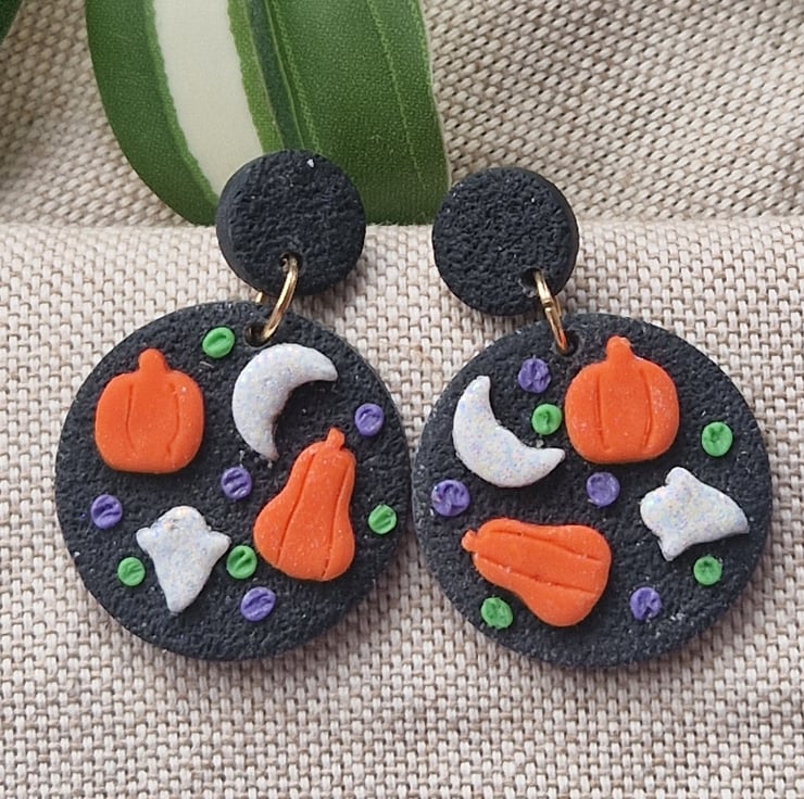 Handmade with care, these dangly earrings are crafted from lightweight polymer clay, making them comfortable enough to wear all day. Each pair is unique, no two are exactly the same, giving you a truly one-of-a-kind accessory. Approximately 35mm long. Hypoallergenic studs.