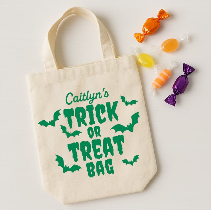 - Personalised Design – Add any name (up to 8 characters) to create a unique Trick or Treat bag.
