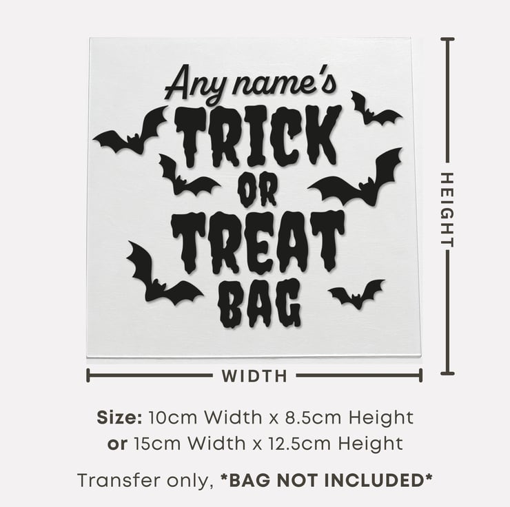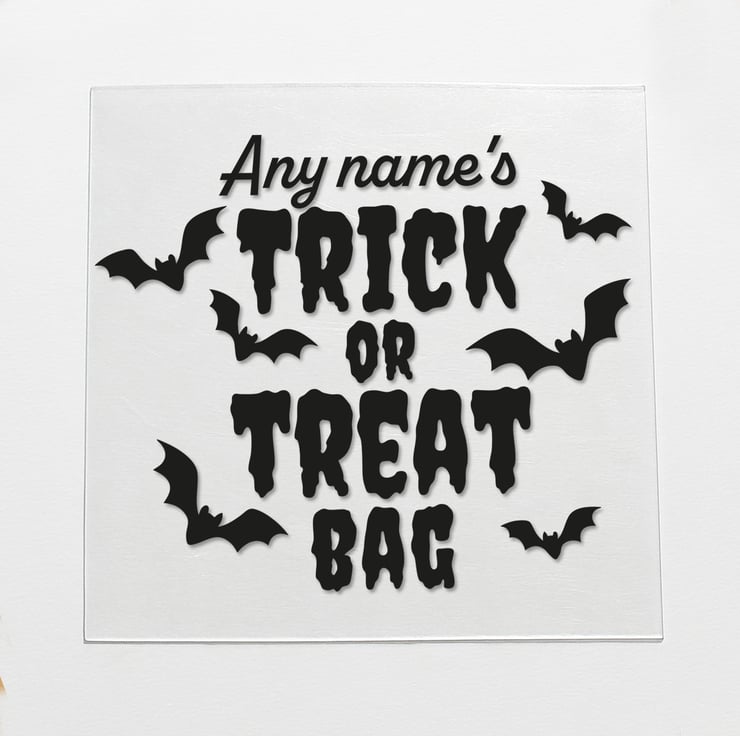 Get Halloween-ready with this personalised Trick or Treat Bag iron-on vinyl transfer, perfect for creating a unique and spooky candy bag for your little one.