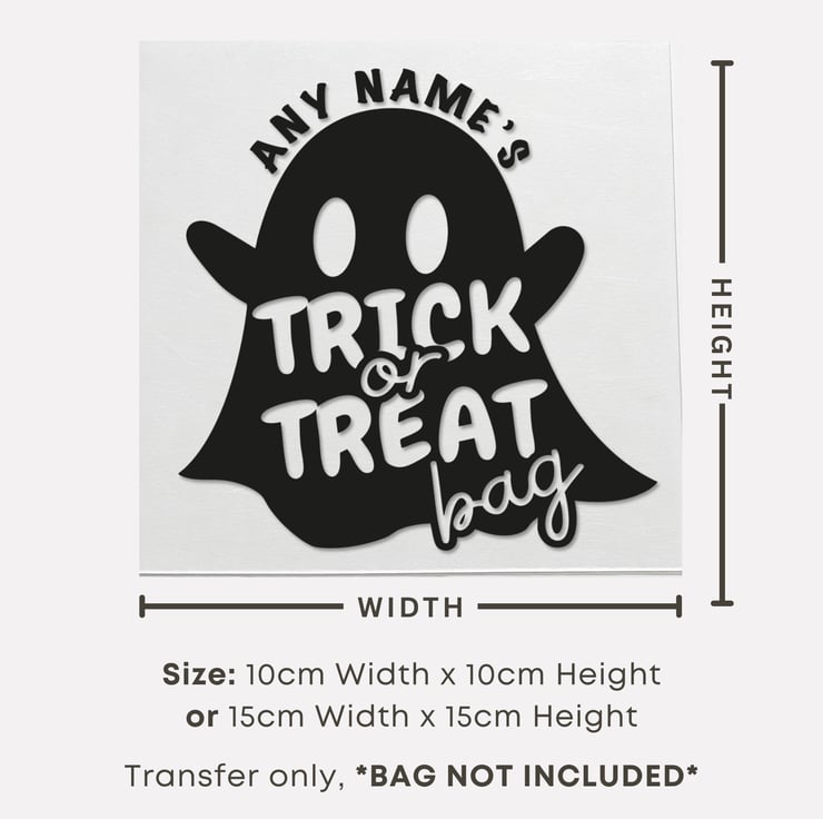 Personalised Ghost Trick or Treat Bag Iron On Vinyl – Custom Halloween Transfer