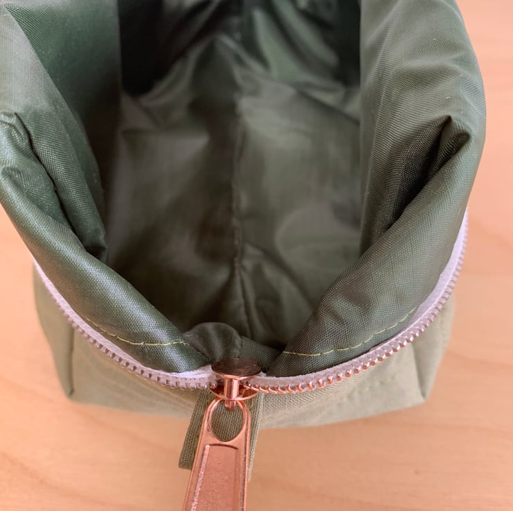 The box shape makeup bag was created as an alternative to straight sided bags that I had previously made. It took a while to perfect the method of the fully enclosed lining, but it was worth the time and effort to achieve such a lovely neat finish.