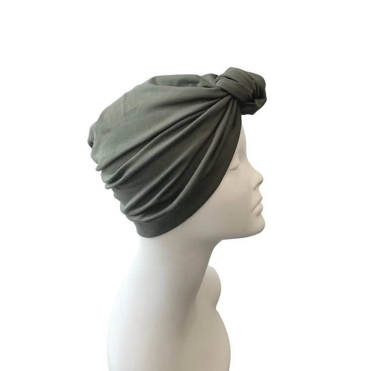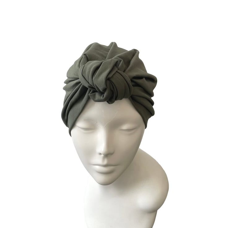 Khaki green turban hat for women.