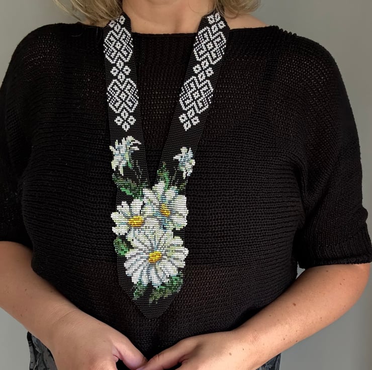 Each necklace is unique and carries a piece of cultural heritage within it. This necklace is not just jewelry, but also a story — of tradition, resilience, and creativity. It makes a beautiful gift for someone special, or a meaningful addition to your own collection. 100% handmade using high-quality glass seed beads.