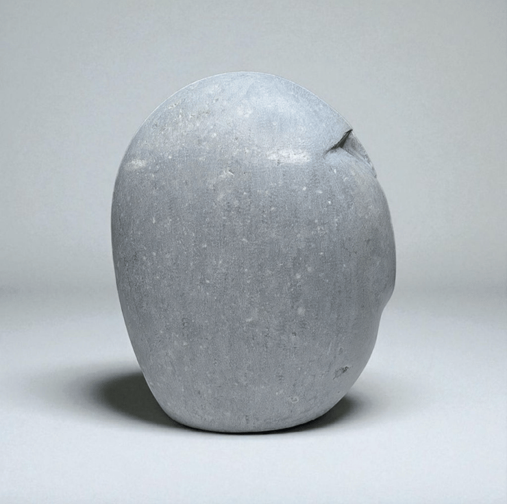 This unique stone face sculpture is carved from a solid limestone pebble, giving it a natural, organic feel with a playful expression. Its rounded form and minimalist style make it a striking piece of stone decor that adds both character and grounding energy to any space.
